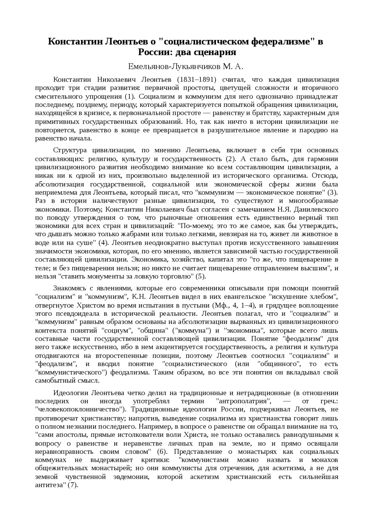 Славянский царь (Леонтьев, Тихомиров и социализм) . Реферат . . .