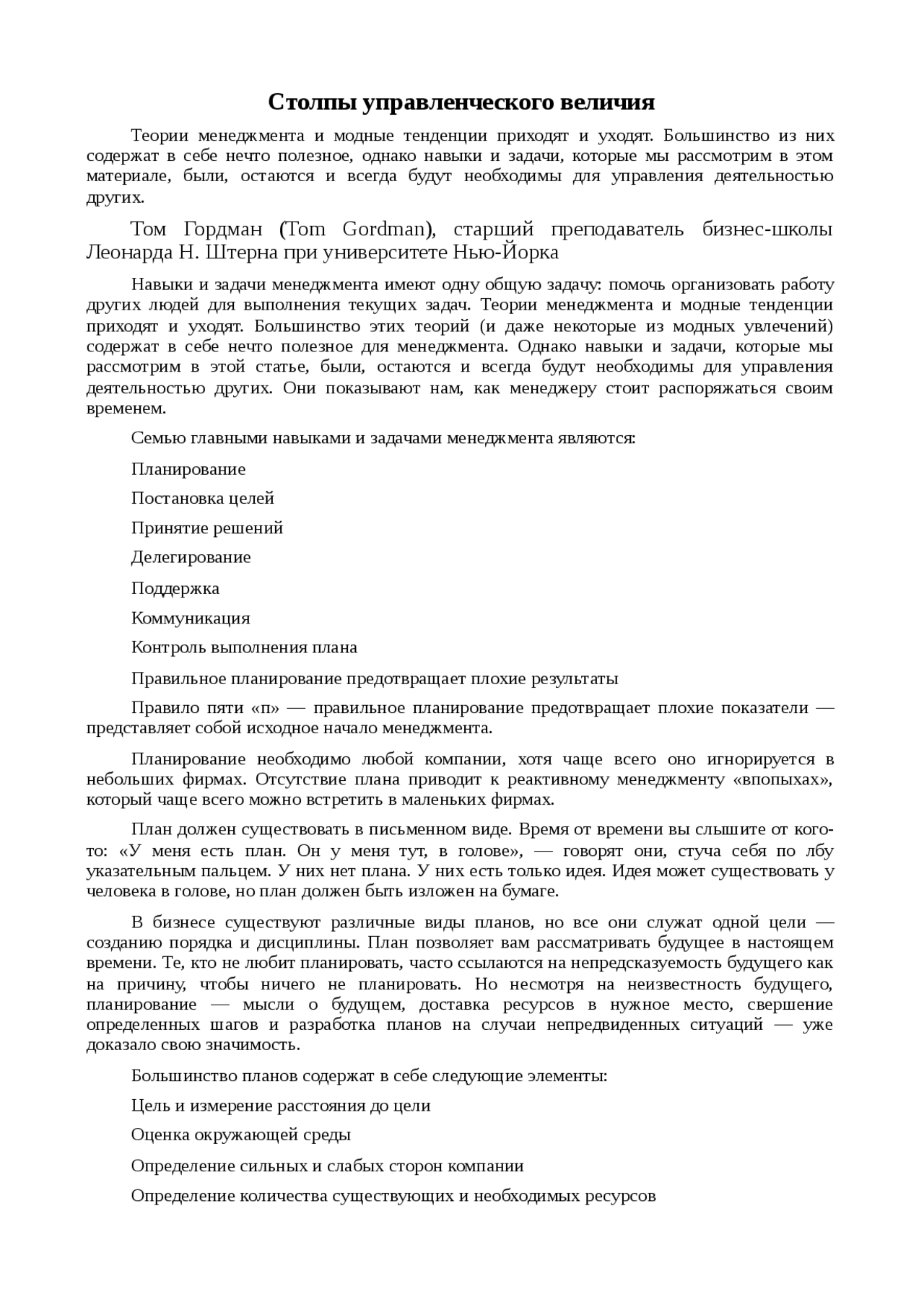 Реферат по теме Столпы управленческого величия