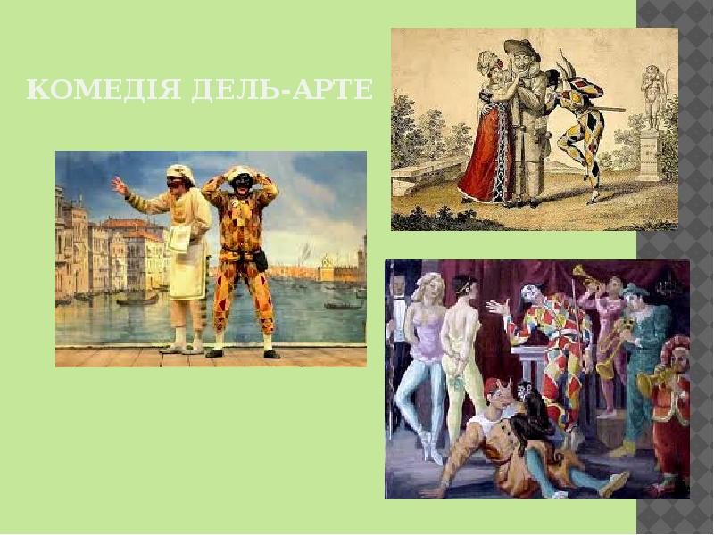 Одно из великих достижений итальянского Возрождения, помимо шедевров живописи, скульптуры и архитектуры — комедия дель арте, идущая от древнеримских фарсов — ателланов . Она существенно отличалась как от трагедии, так и от обычной комедии с заранее написанным текстом . . .