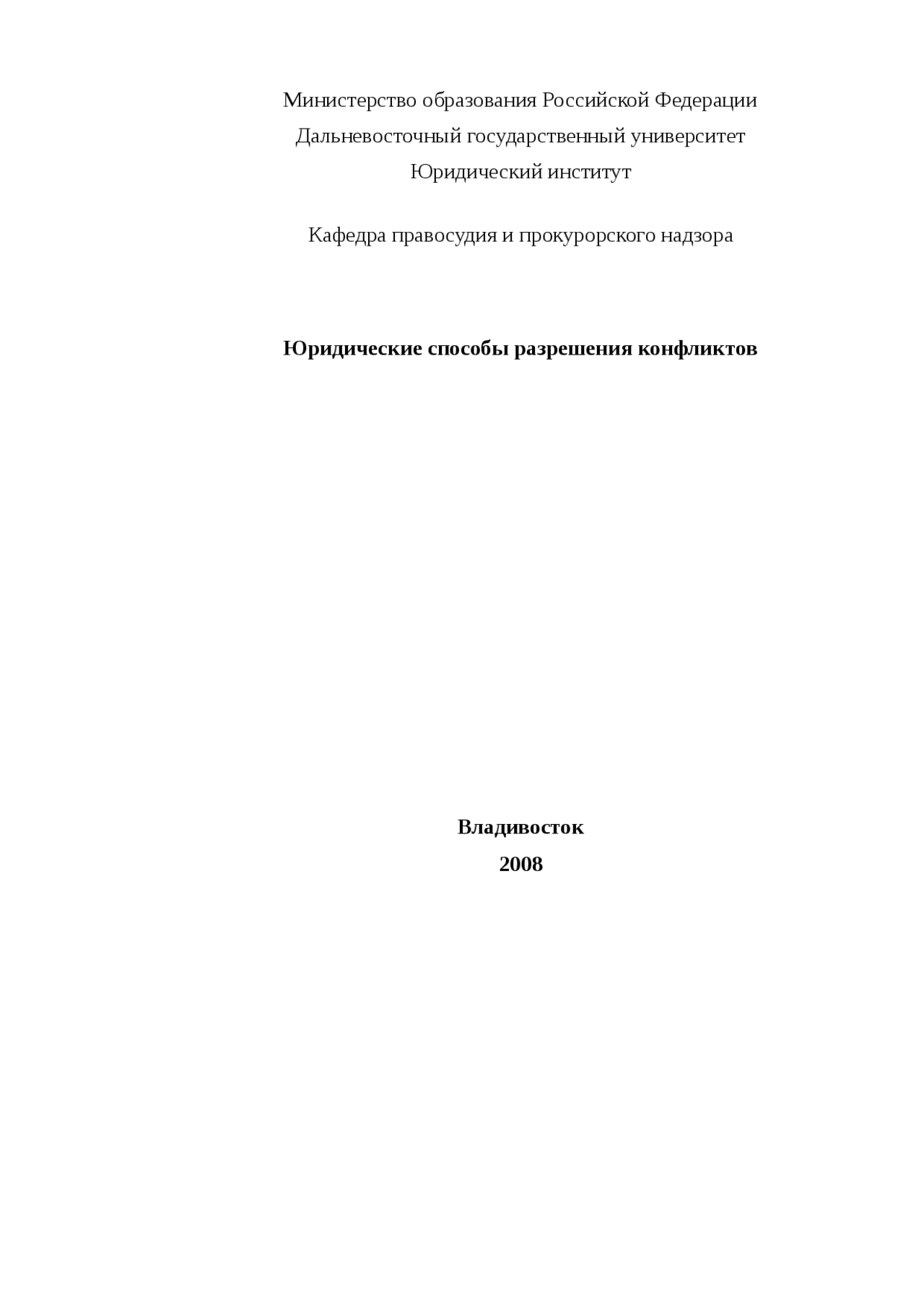 Реферат: Юридические способы разрешения конфликтов . . .