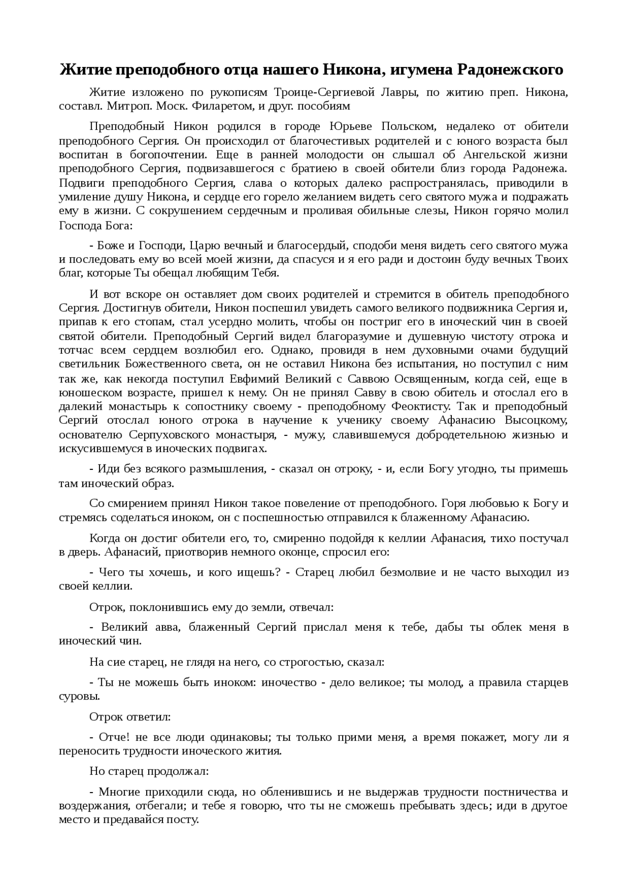 Xreferat .com » Рефераты по религии и мифологии » Житие преподобного отца нашего Никона, игумена Радонежского