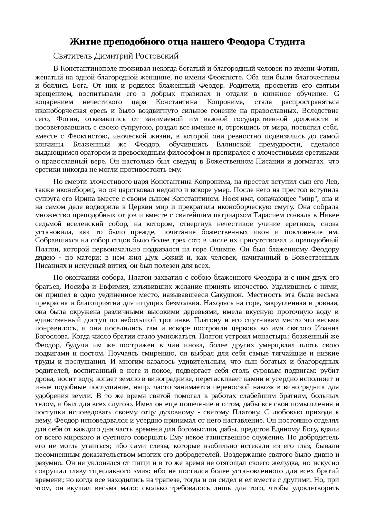 Реферат по теме Житие преподобного отца нашего Феодора Студита