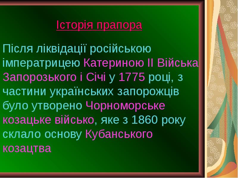 1 . Запорозьке козацтво - феномен світової історії . 2 . Трагічна доля життя останнього кошового отамана Запорізької Січі Петра Калнишевського . 3 .