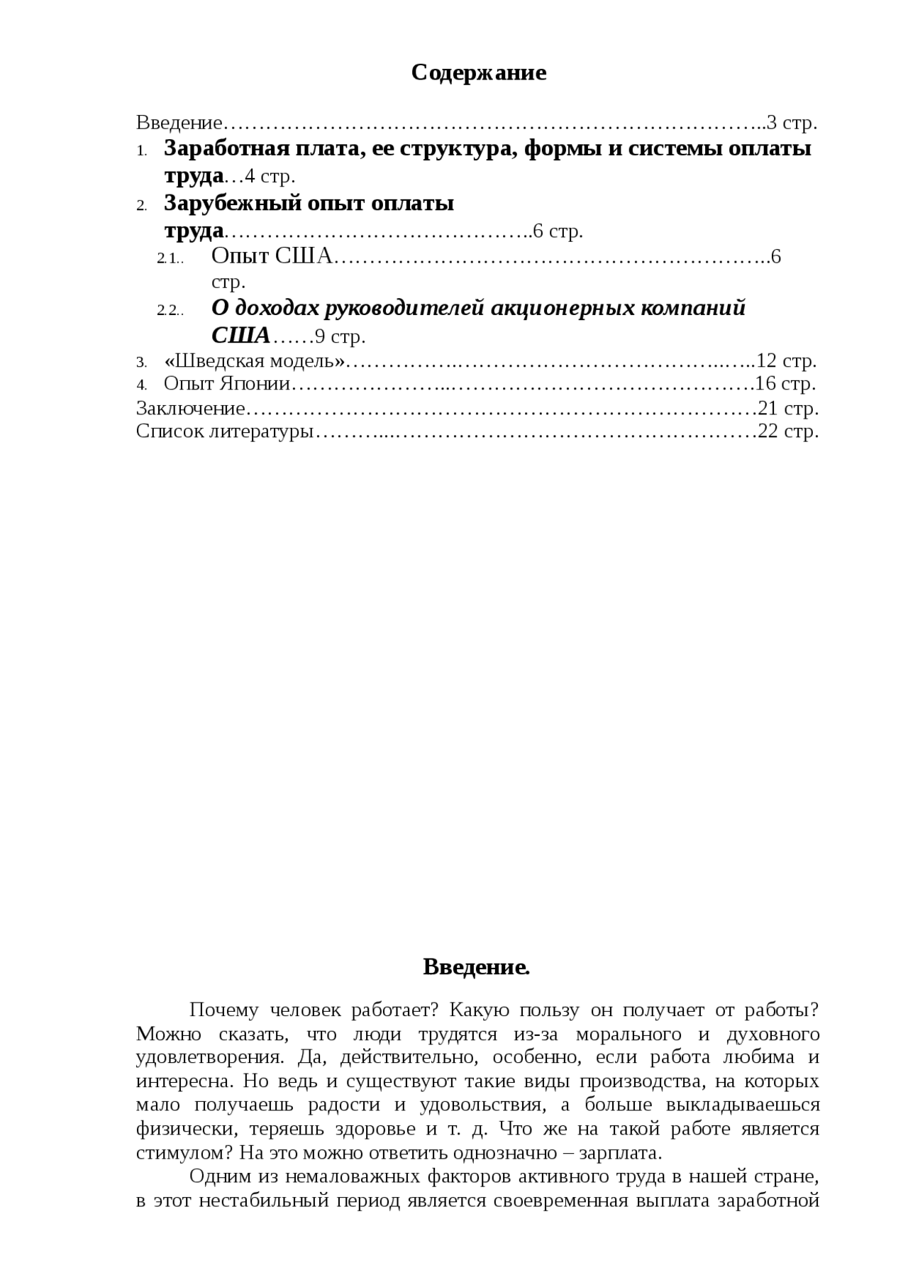Зарубежный опыт оплаты труда . Содержание . Введение………………………………………………………………… . .3 стр . Заработная плата, ее структура, формы и системы оплаты труда…4 стр .
