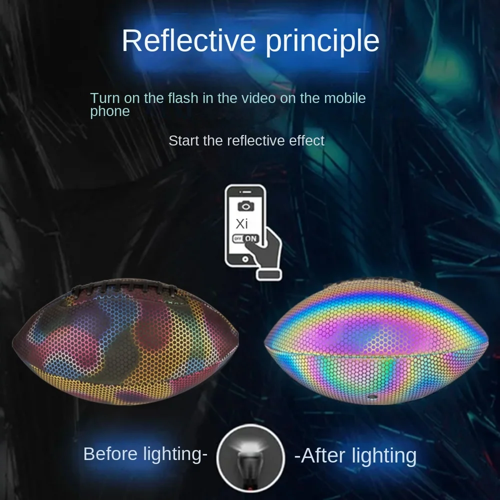 jWXZUyGDHere you can buy Reflective Leather Material Glowing Rugby Dazzling Colors Rubber Inner Liner Reflective Rugby Non Slip Surface with free delivery to your post office.