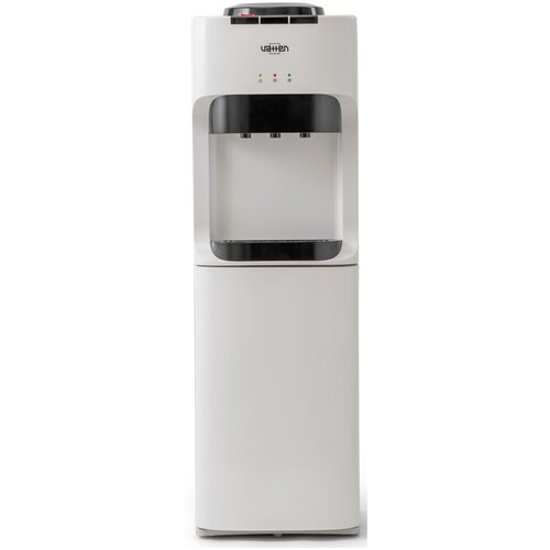 Refroidisseur d'eau au sol. Avec refroidissement par compresseur et performances élevées de chauffage de l'eau - jusqu'à 6 litres par heure (puissance du chauffe-eau 650 W). Pas de casier. Hauteur standard - 928 mm. Pour la maison. Pour le bureau. Trois robinets, commande par bouton - eau chaude, froide et à température ambiante. Couleur du corps blanc. Les boutons et le boîtier des robinets, ainsi que le bac collecteur, sont noirs. Le réceptacle à bouteilles, les panneaux supérieurs et avant sont en plastique ABS de haute qualité résistant aux UV. Les panneaux latéraux sont en acier peint en blanc. Les réservoirs d'eau chaude et froide sont en acier inoxydable. Trois indicateurs LED (marche, indicateur de chauffage, indicateur de refroidissement).Refroidisseur d'eau au sol avec chauffage et refroidissement, pas d'armoire, pas de réfrigérateur. Glacière pour la maison et le bureau. Couleur blanche. Trois robinets avec boutons. Convient pour une utilisation à la maison et au bureau, dans les entreprises et les institutions. Trois indicateurs LED (sous tension, indicateur de chauffage, indicateur de refroidissement - alimentation, chaud, gel).