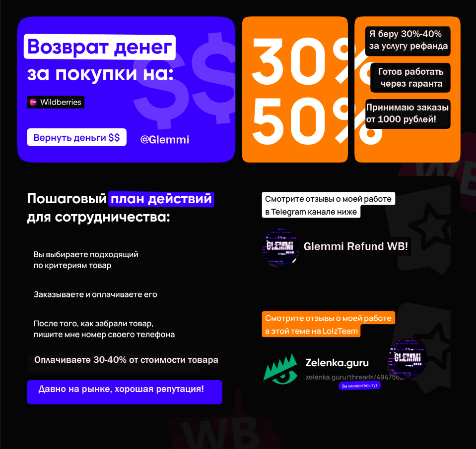 Для заказа refund и других вопросов обращаться в телеграм https://t.me/Glemmi