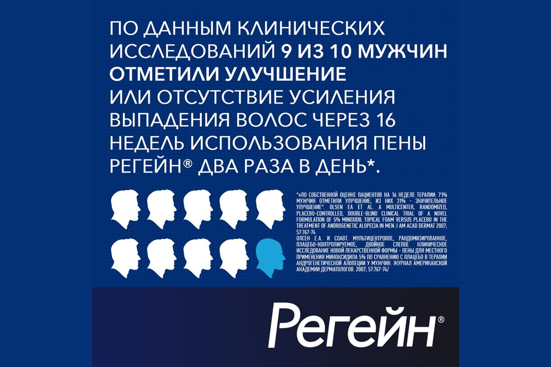 Регейн инструкция по применению: показания, противопоказания, побочное действие - описание Regaine пена д/наружн . прим . 5%: баллоны 60 г 1 или 3 шт . с распылителем (44635) - справочник препаратов и лекарств .