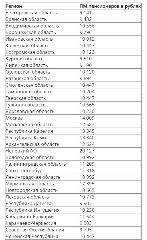 Региональные минимальные пенсии