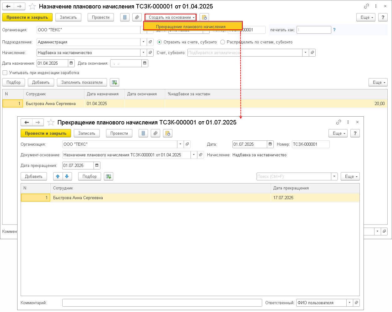 Регистр плановые начисления