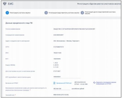 Регистрационные данные еис