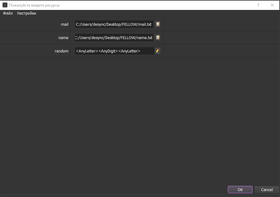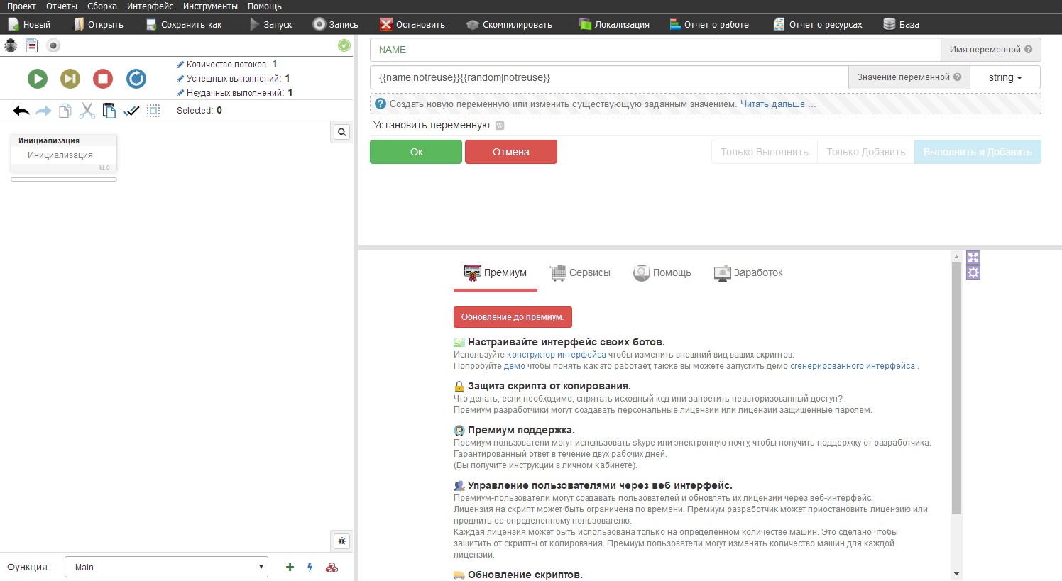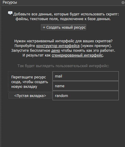 Для начала нам нужно создать переменную с рандомным именем. В переменную вставляем ресурсы с именем и рандомом, убирая галочки с повторного использования и назовем эту переменную "NAME"