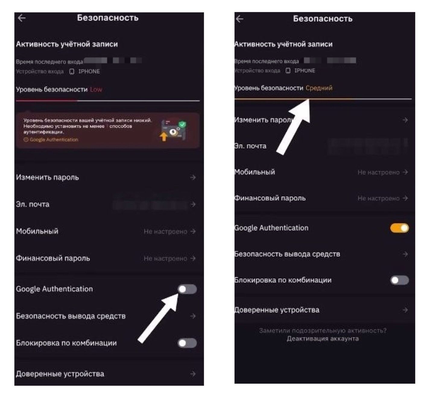 Зайдите в свой профиль, в раздел "Безопасность":