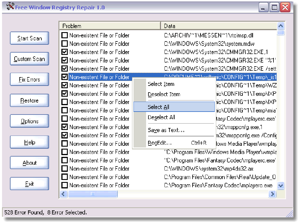Registry read error