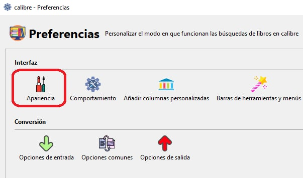 1º Vamos a Calibre/Preferencias/Apariencia