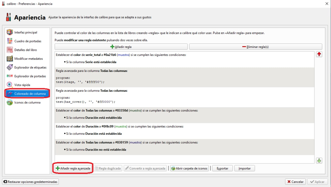 En este caso nos interesa, si o si ver los libros sin portada o los libros sin etiquetas, así que esa regla será la 1º de tu clase.