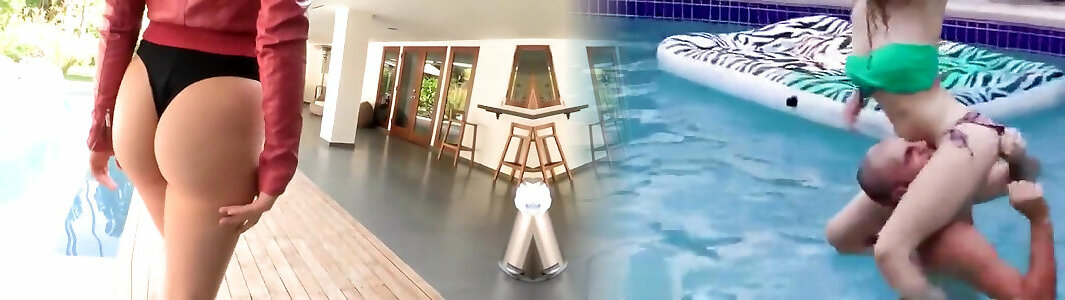 Am Pool bläst das rothaarige Analluder