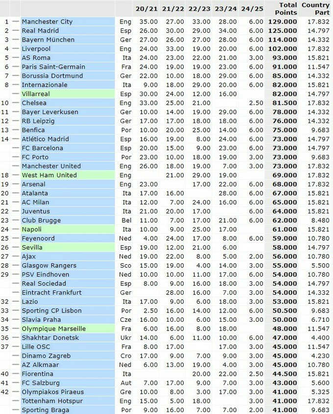 Рейтинг еврокубков