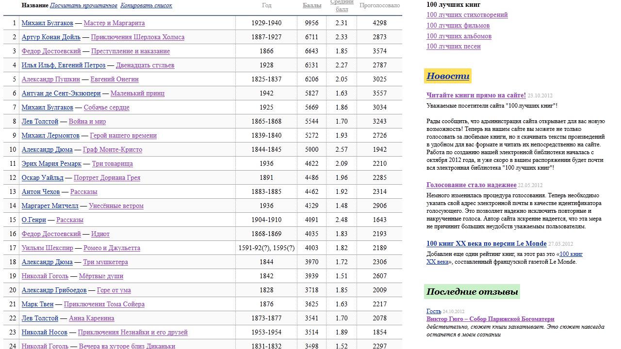 Рейтинг новых книг