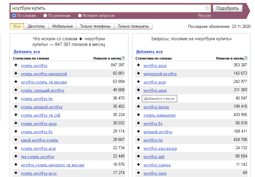 Рейтинг запросов товаров