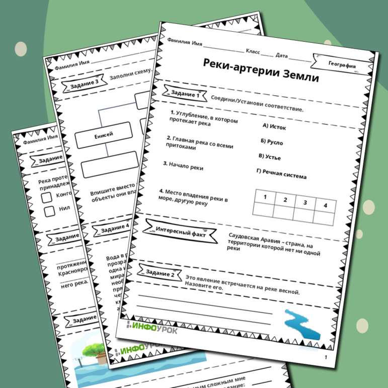 Реки артерии земли рабочий лист