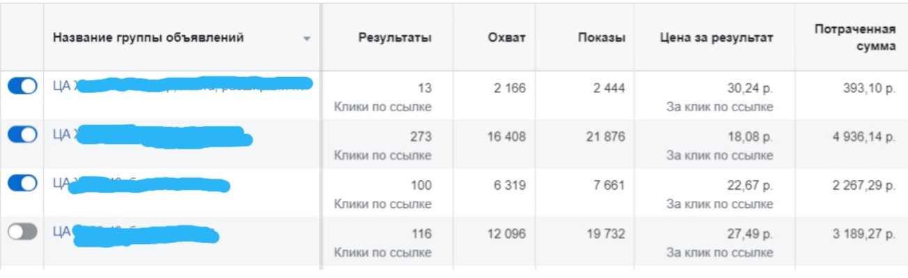 После проведённого анализа ЦА было принято решение запустить 3 аудитории.