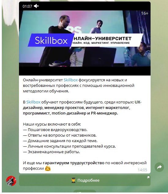 Пример рекламного поста: