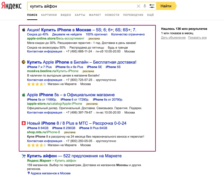 Реклама в поисковой строке