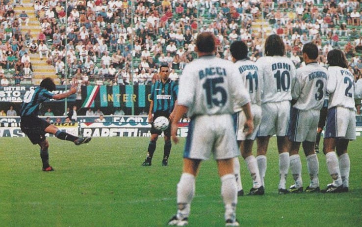 Dan Williamson, перевод Canale SforzescoПервый тур сезона 1997-98, переполненный Меацца, Интер летит 0-1 Брешии. На все это с VIP трибуны взирает владелец миланской команды, Массимо Моратти, который накануне обновил мировой рекорд по тратам и привез из Барселоны Рональдо. До стартового свистка все камеры и внимание было приковано к Феномену, а от самой команды, которая почти десятилетие жила в тени своих соседей, ожидалось многое. Результат на табло шокировал всех, включая, казалось, и самих гостей. Тогда на поле появился другой новичок из Южной Америки, не такой известный как бразилец: уругвайский форвард Альваро Рекоба. Через 8 минут после выхода на поле вместо Маурицио Ганца, и за 10 до финального свистка, Рекоба получает пас от Бенуа Коэ и хлёстко бьет в верхний угол ворот с добрых 28 метров. Нерадзурри продолжили давление, и через 5 минут получили право пробить штрафной в 32 метрах от ворот. К мячу, излучая уверенность в себе, подошел Рекоба. Уругваец, полагаясь не на грубую силу, но на хитрость и подкрутку, словно кнутом отправил мяч в сетку по замысловатой дуге в обвод стенки. К ликованию присоединился даже Пальюка, пробежавший все поле из своих ворот к чужим. Миллионы Моратти, которые жгли ему карман, Рональдо, атмосфера невероятного камбэка – тога все говорило о том, что Интер наконец может выбраться из тени Милана и завоевать Скудетто впервые с 1989 года. Дебют Рекобы был не только рождением новой звезды, но и началом новой золотой эры в истории Клуба.