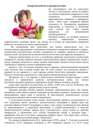 Рекомендации родителям левшей
