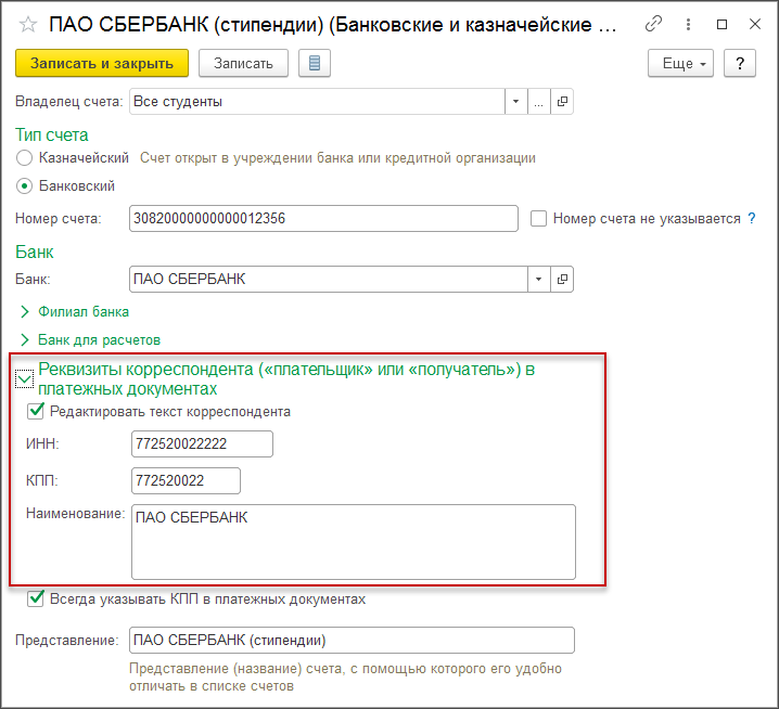 Реквизиты карты для стипендии