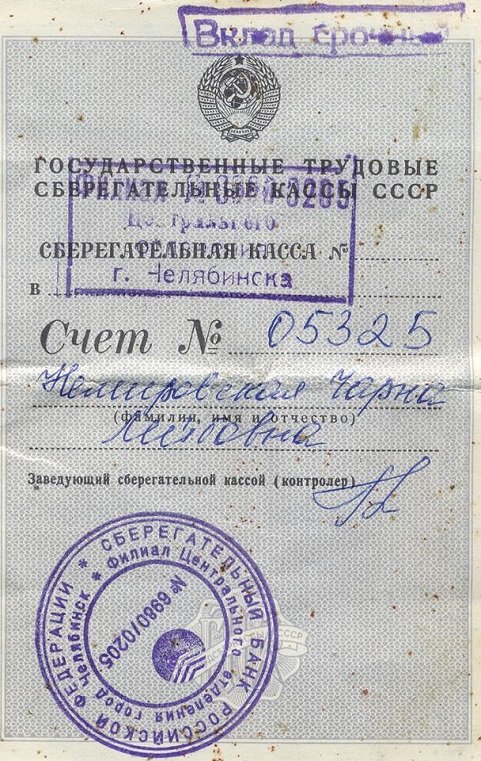 Реквизиты сберкнижки