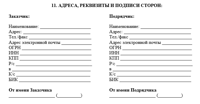 Реквизиты в договоре исполнителя