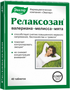 Релаксозан 5 .0 1 отзыв Цена от 176 ₽ В наличии в 54 аптеках Цены в аптеках БАД Релаксозан содержит высокую суточную дозировку валерианы - 500 мг, усиленную мелиссой и мятой . Поэтому Релаксозан действует особенно быстро, точно и эффективно: помогает снять стресс, успокоить нервы, избавиться от тревоги и раздражительности . Подробнее