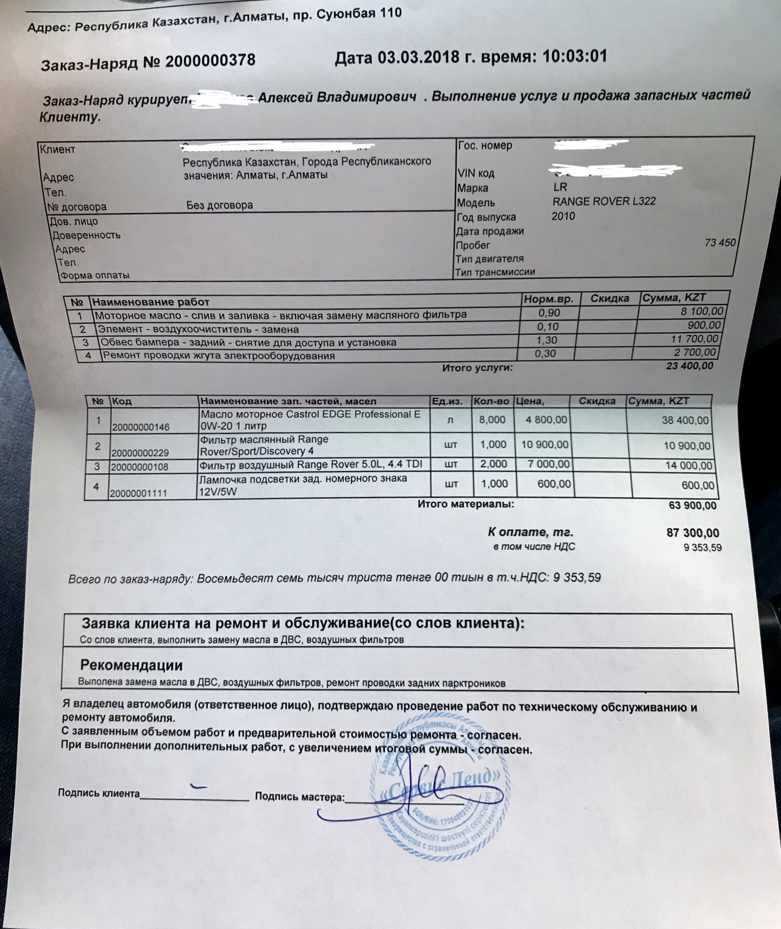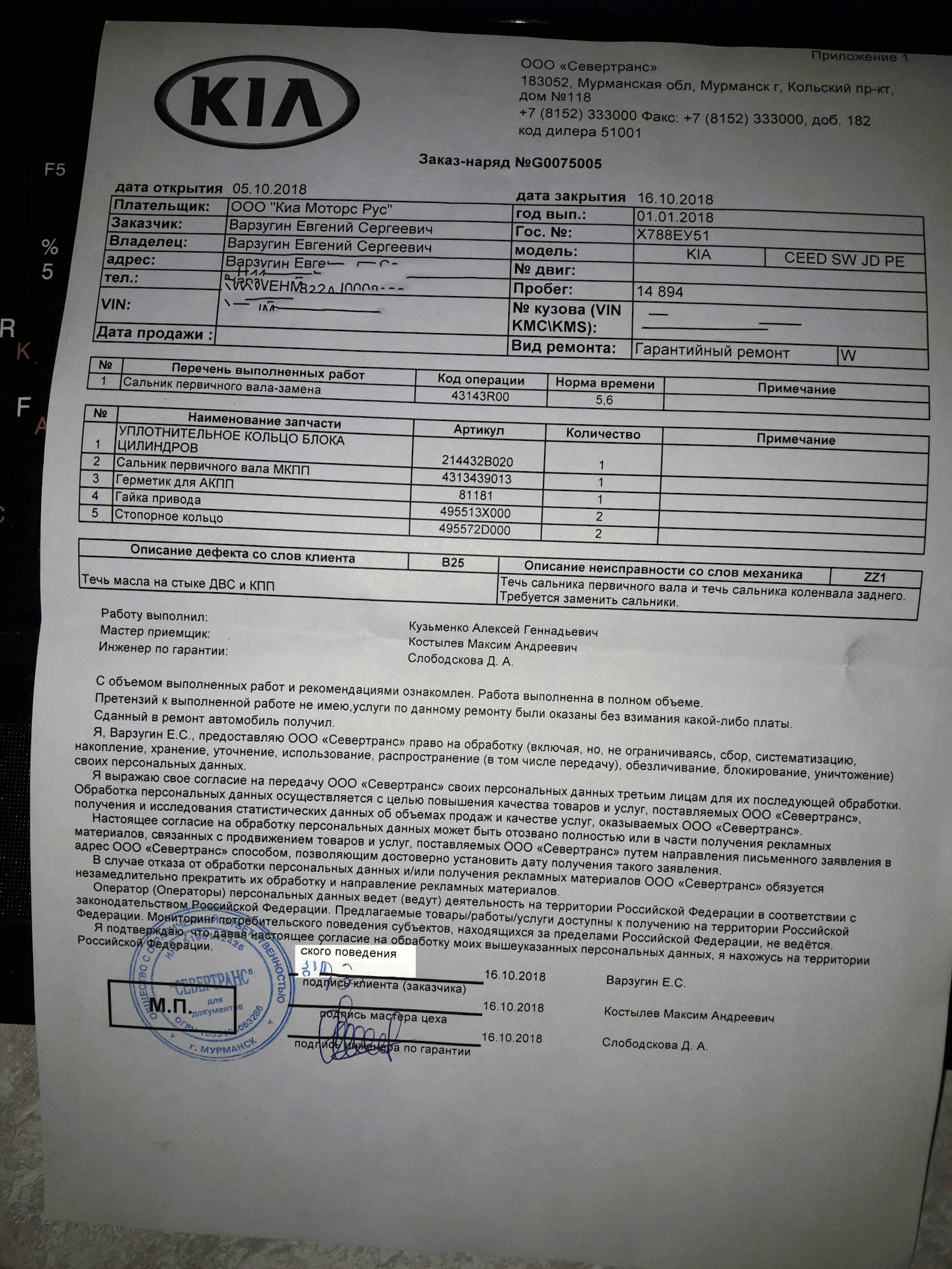 Ремонт двигателя по гарантии
