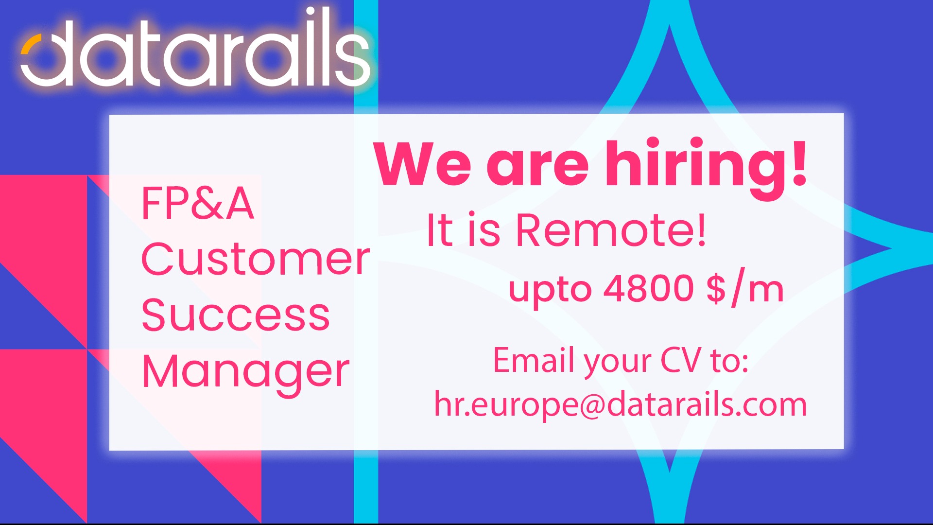 Remote FP&A Customer Success Manager wanted! Upto 4800 usd/m