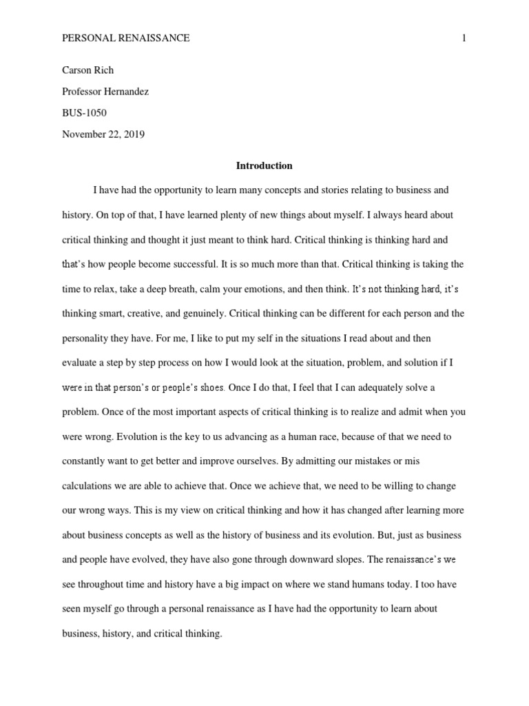 "The Renaissance Essay " doesn't help, our writers will! Trust an expert . Furthermore, Renaissance humanists did not focus on renouncing earthly aspirations for the scrutiny of God, but cultivated self-excellence, searched the recognition of their success in their doings, and ventured into the exploration of their personalities . These acts of . . .