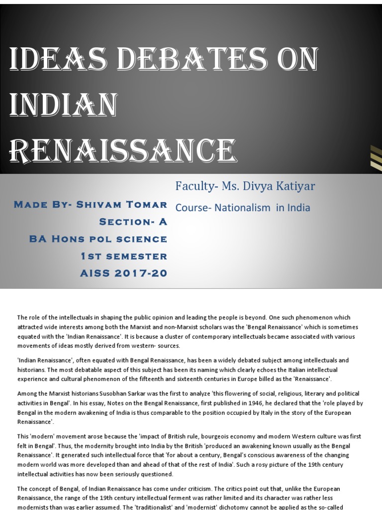 Best Essay Topics on Renaissance . Mona Lisa and Renaissance Humanism . The word 'Renaissance' literally means 'rebirth', but most people today associate the term with a specific time period in Western European culture . The Periods of Renaissance & Reformation, Industrial Revolution and Contemporary World . Some of the most significant . . .