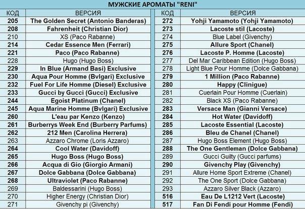 Купить Духи Рени Парфюм - каталог парфюмерии Рени по номерам и названиям c отзывами