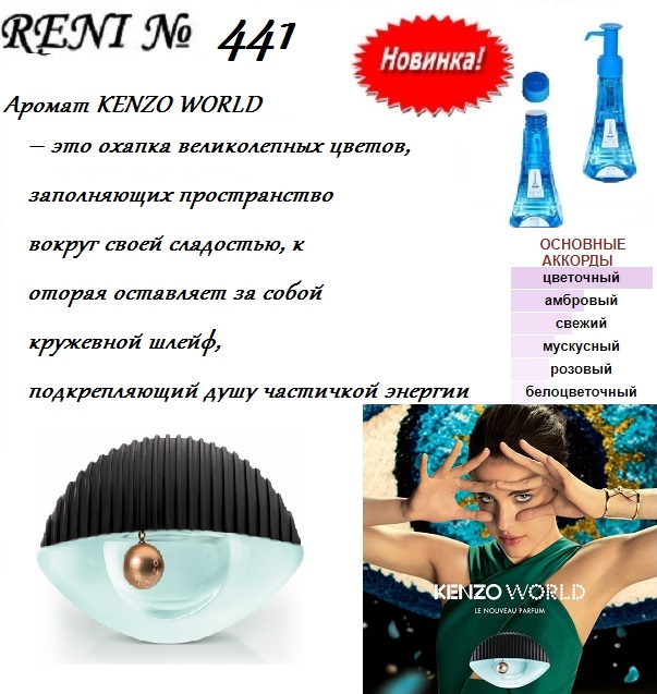 Под каждым номером духов "Рени", как вы догадались, скрыта определенная версия известного аромата . Рассмотрим для примера женские: 430 - Donna Trussardi . 168 - Hugo . 400 - L eau de Chloe . 433 - Modern Prinsess Lanvin . 309 - Happy . 362 - Rumeur 2 Rose Lanvin . 416 - 1881 Bella Notte Woman . 399 - Scarlett Cacharel . 440 - Fly high (mexx) .
