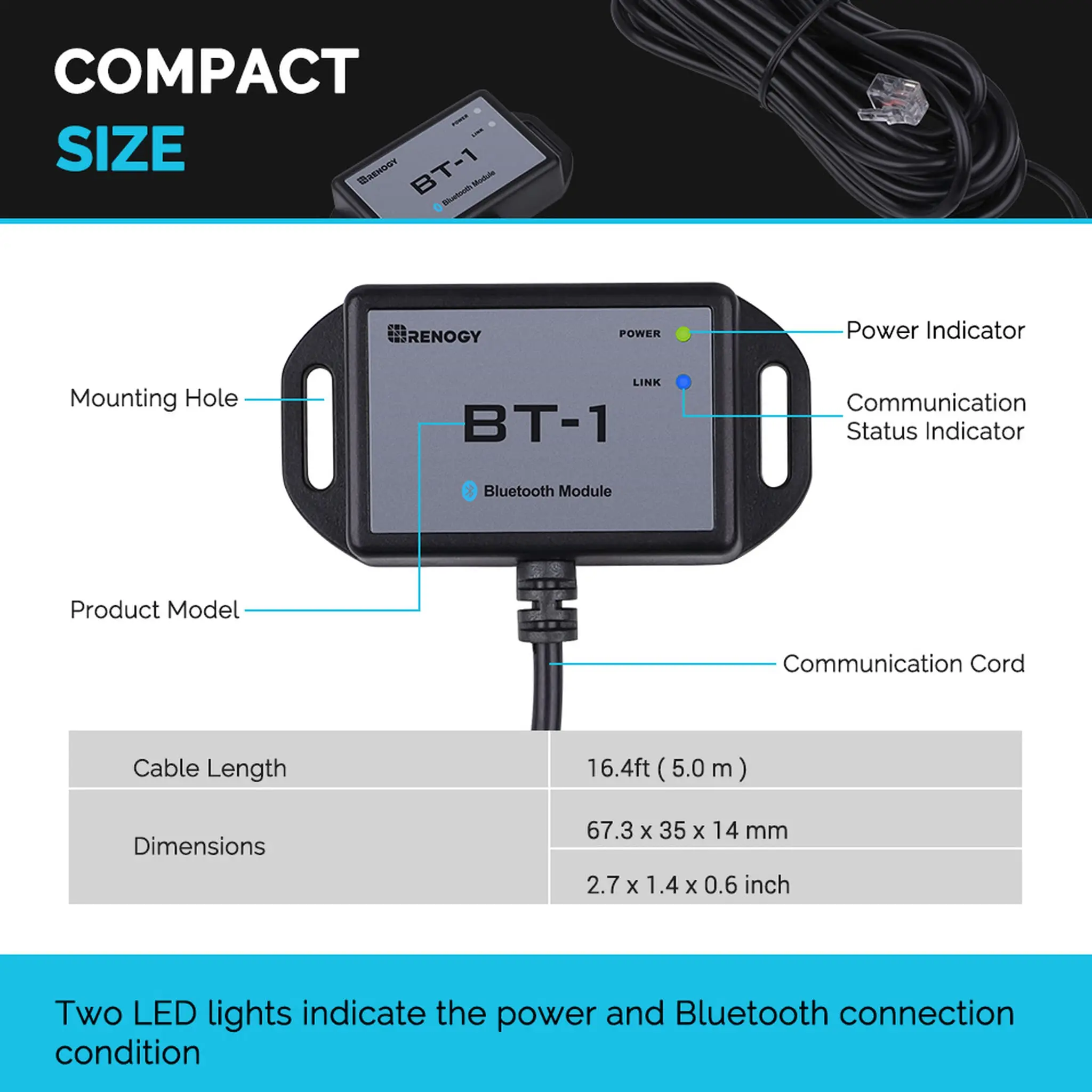 Renogy Bluetooth Module RJ12 Communication Port Compatible Rover/Wanderer/Adventurer Charge Controllers, BT-1 RS232 - Купить с бесплатной доставкой