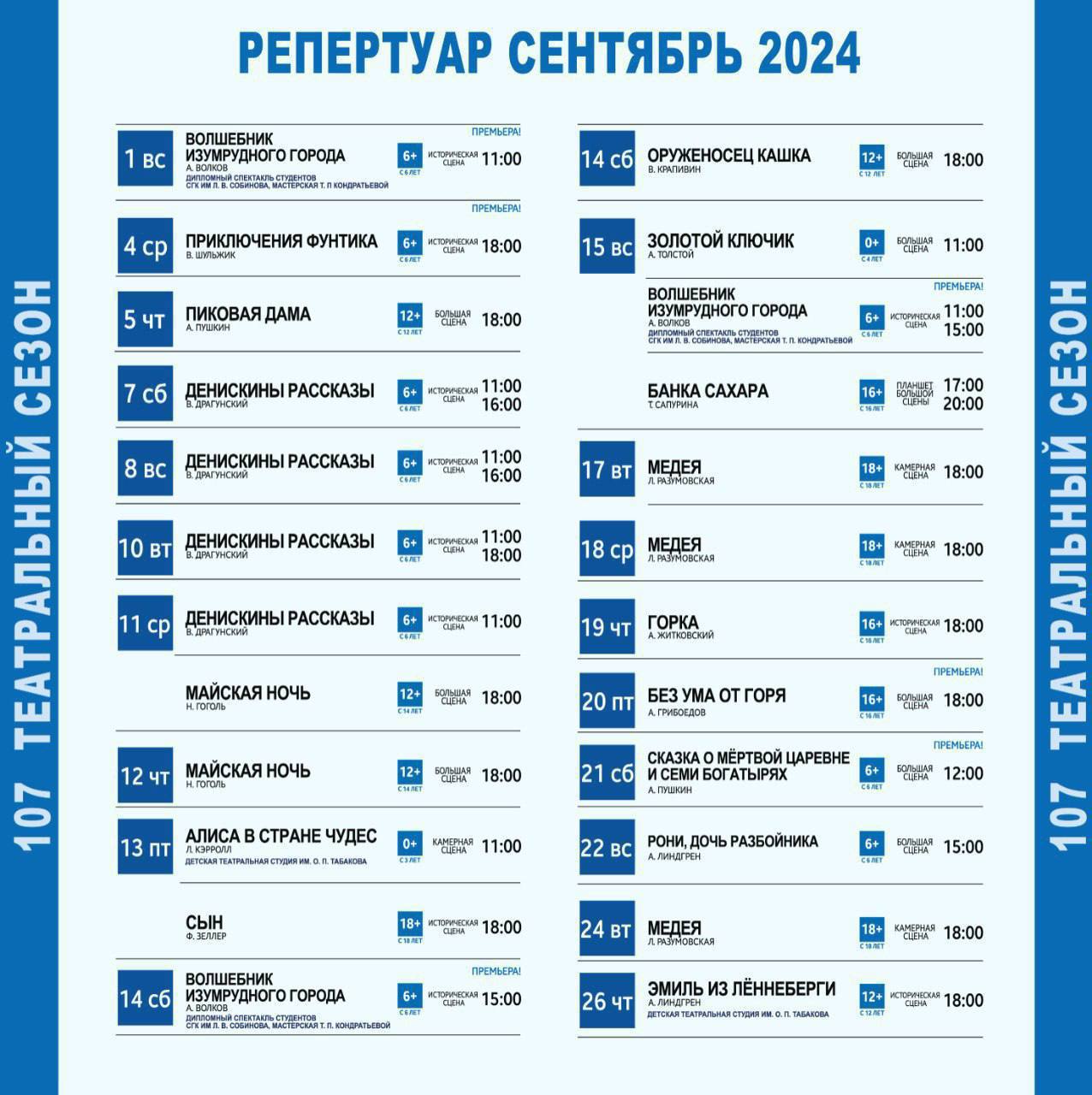 Репертуар тюза на сентябрь 2025