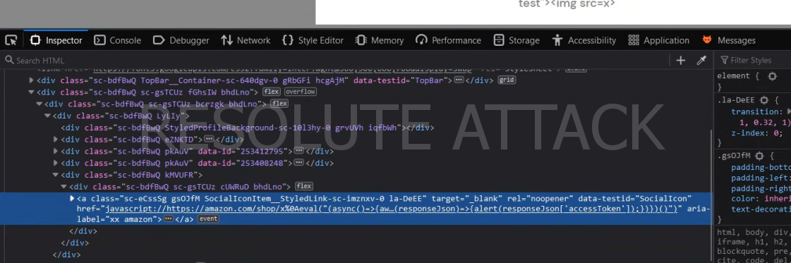 На сайте не было проверки URL-адреса, предоставленного для ссылки SocialIcon, и это позволило включить javascript uri. Поскольку файлы cookie были помечены как httponly, их было невозможно украсть напрямую через xss, поэтому вместо xss была найденная другая точка входа, в которой происходила утечка accessToken, используемого для аутентификации.