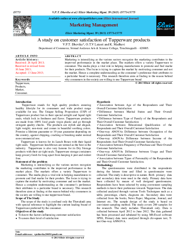 (PDF) A study on customer satisfaction of Tupperware . . .
