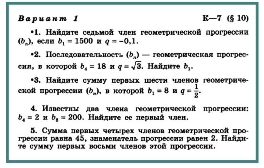 Решение прогрессии 9 класс
