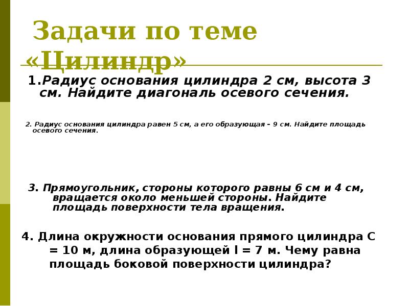 Решение задач цилиндр 11 класс