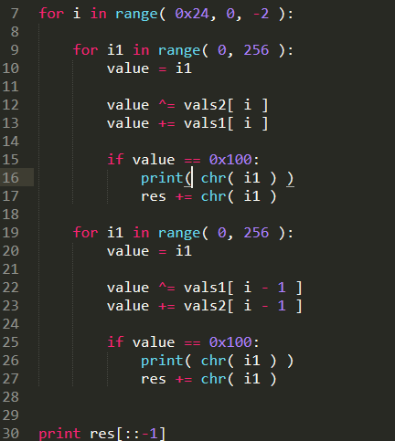 То есть надо чтобы на каждом шаге при выполнении этой операции получался 0. Это можно получить только если результат преобразования символа пароля будет 256 (т.к. младший байт будет равен нулю). Попробуем выполнить это условие и подобрать необходимые символы с помощью Python.