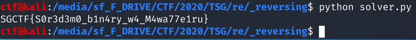 Решение задания "Reverse-ing" с TSG CTF 2020.