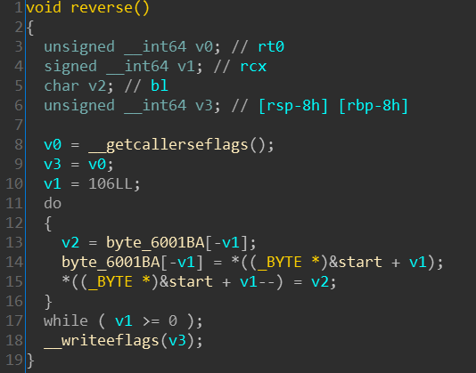 Как можно увидеть - новый код выполняет одну инструкцию и опять вызывает функцию reverse, которая вернёт привычный порядок. Таким образом у нас получается всего два активных состояния секции кода.