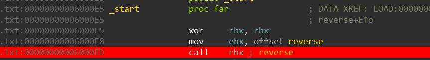 Сразу после вызова reverse мы меняем большую часть кода и уже в момент возвращения из reverse попадаем на другой код.